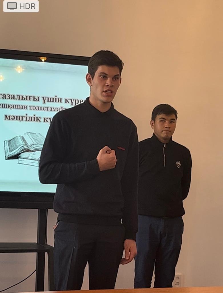 Мәнерлеп оқу сайысына он студент қатысты. Олар ақын - жазушылардың шығармаларын үш тілде мәнерлеп жатқа оқыды. Бұл сайыста студенттер өздерінің өте зейінді,әдебиетке құштар екенін көрсетті.
