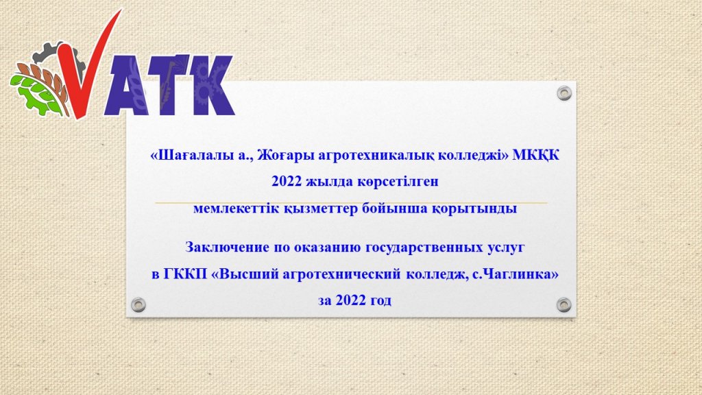 Отчет по государственным услугам за 2022 год ГККП «Высший агротехнический коллеж.
