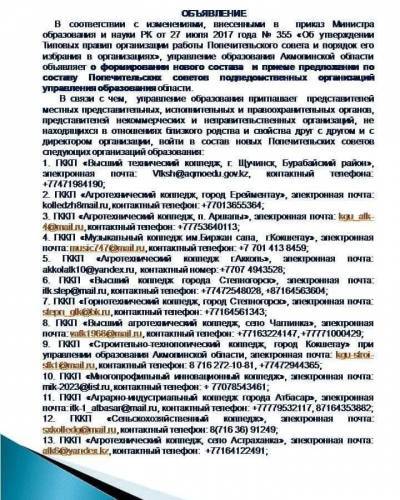 ГККП «Высший агротехнический колледж, село Чаглинка» при управлении образования Акмолинской области.