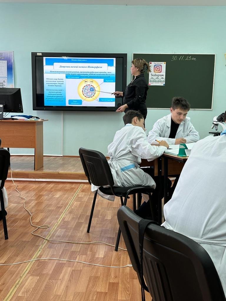 Недели “Агротехнических дисциплин” преподаватель биологии Медетова Шолпан Арыпжановна провела открытый лабораторный урок на тему “Митоз” для студентов группы 11 БҚ.