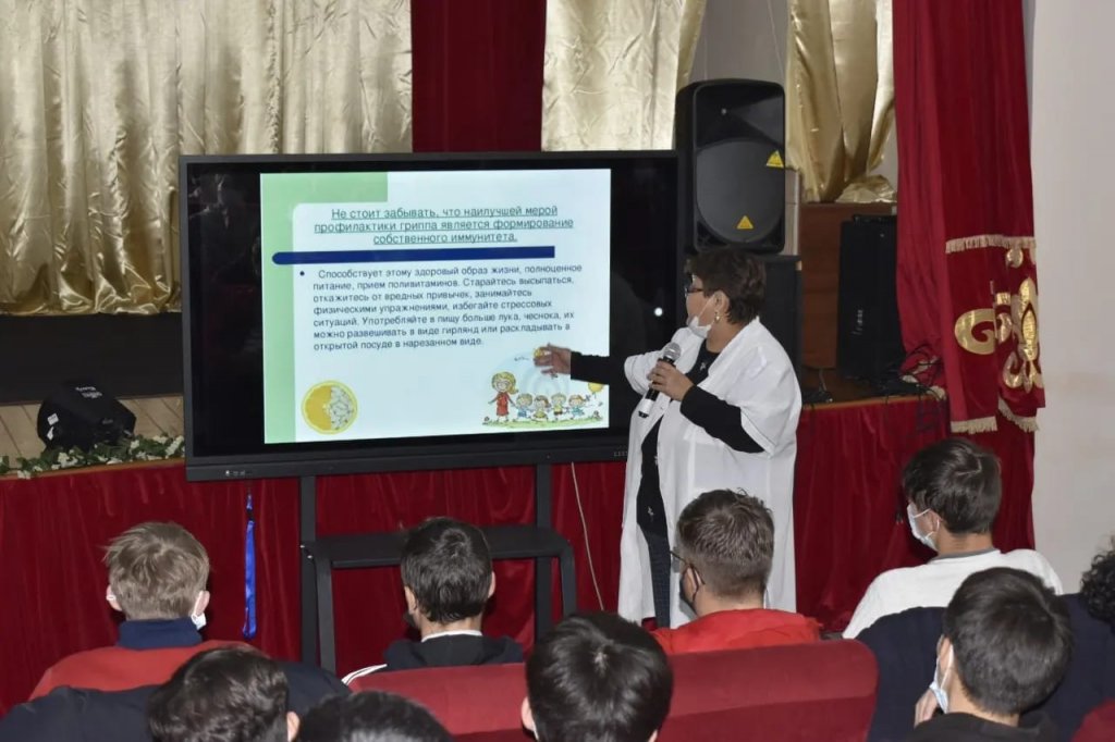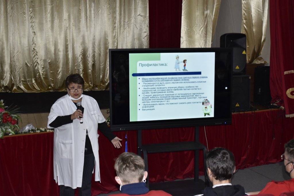 Медработник колледжа Буранбаева А.Ж. провела лекцию со студентами по профилактике гриппа и ОРВИ.